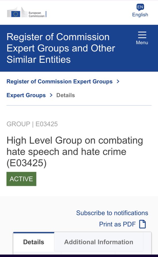 Voici un exemple concret avec cette institution créé en 2016 : « Groupe de haut niveau sur la lutte contre les discours et les crimes haineux (E03425) »