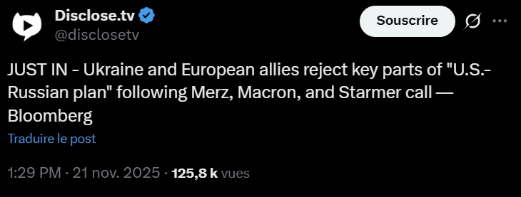 DERNIÈRE MINUTE – L’Ukraine et ses alliés européens rejettent les éléments clés du « plan américano-russe » à la suite d’un appel téléphonique entre Merz, Macron et Starmer — Bloomberg