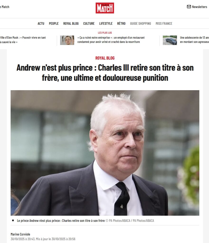 Sur le Prince Andrew qui est lié avec l’affaire Epstein :