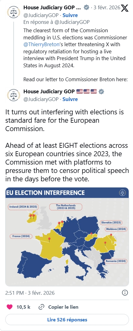 Raid de X France, ou l’arbre qui cache la foret – Révélations scandaleuses faites par la Commission judiciaire de la Chambre des représentants aux États-Unis sur la censure de l’UE et leur ingérence électorale