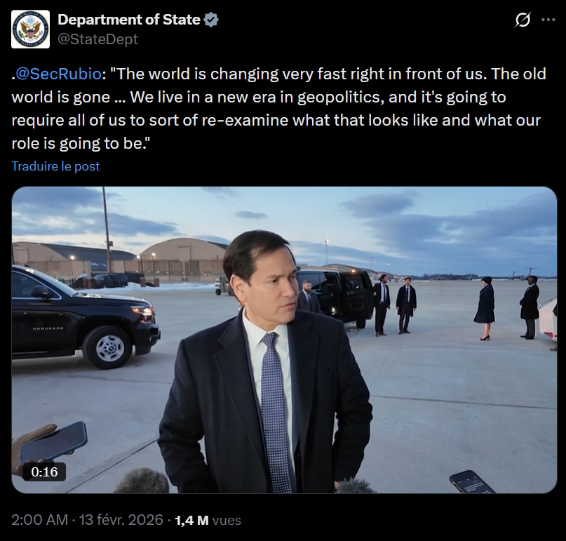 « Le monde change » déclare le secrétaire général des États-Unis, Marc Rubio