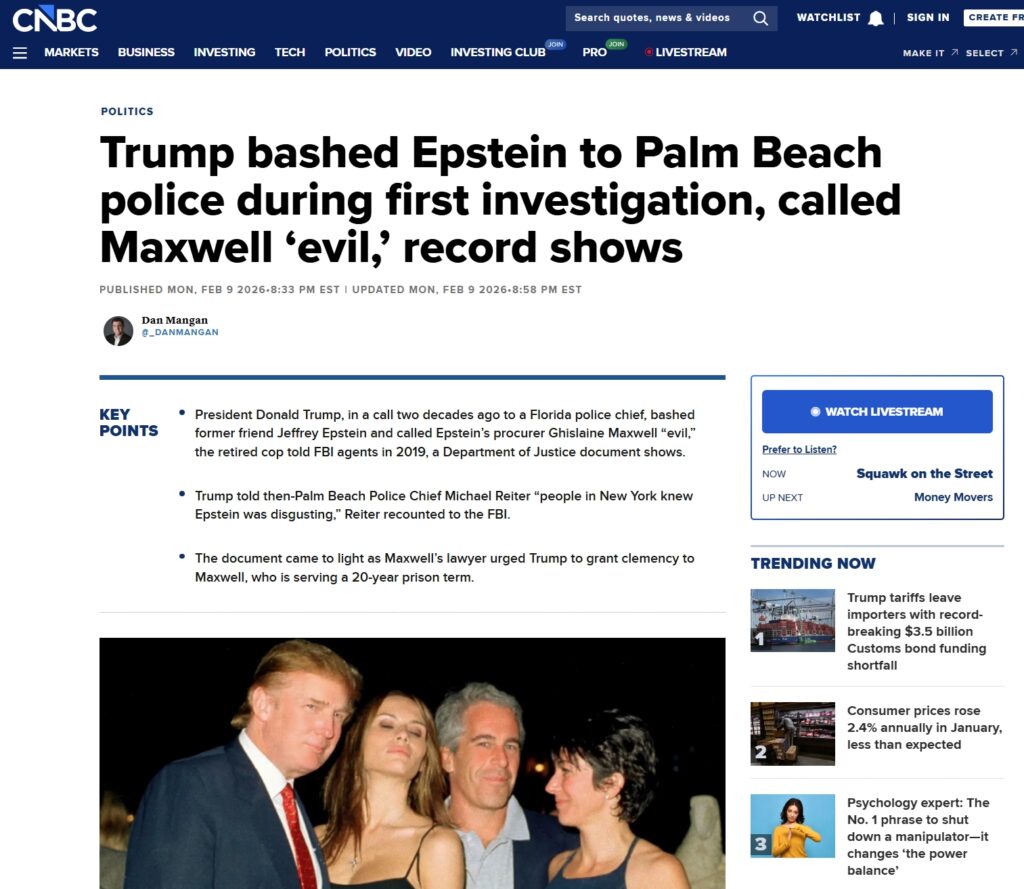 Trump a critiqué Epstein auprès de la police de Palm Beach lors de la première enquête, qualifiant Maxwell de « maléfique ».