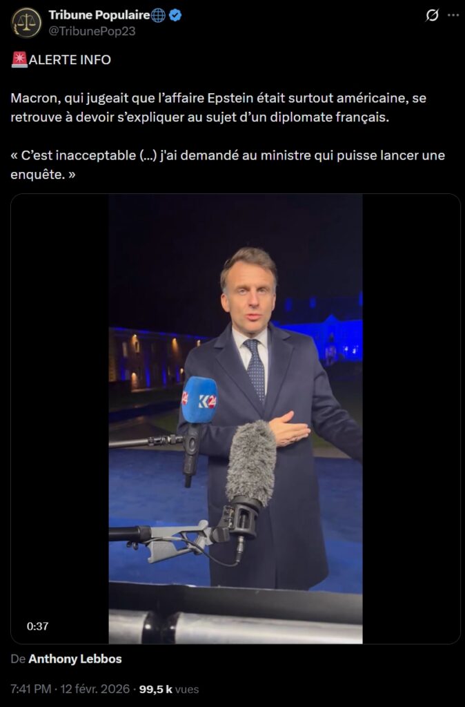 ALERTE INFO : Macron, qui jugeait que l’affaire Epstein était surtout américaine, se retrouve à devoir s’expliquer au sujet d’un diplomate français. « C’est inacceptable (…) j’ai demandé au ministre qui puisse lancer une enquête. »