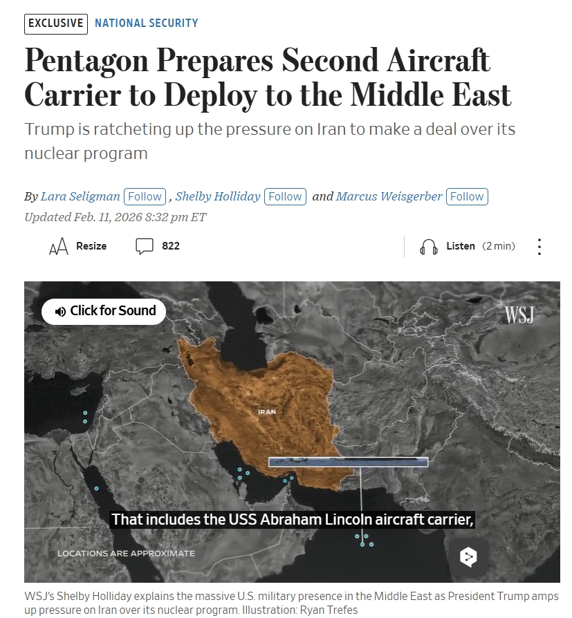 Selon trois responsables américains, le Pentagone a demandé à un deuxième groupe aéronaval de se préparer à se déployer au Moyen-Orient, alors que l’armée américaine se prépare à une éventuelle attaque contre l’Iran. Le président Trump a déclaré mardi qu’il envisageait d’envoyer un deuxième porte-avions au Moyen-Orient afin de se préparer à une action militaire si les négociations avec l’Iran échouaient. L’ordre de déploiement pourrait être donné dans les prochaines heures, a déclaré l’un des responsables.